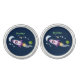 Cute rocket ship in space cartoon illustration cufflinks