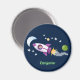 Cute rocket ship in space cartoon illustration magnet