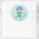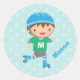 Cute little skater boy with blue helmet, matching protective gears and roller skates. Personalized stickers for boys who love roller skating! Colour palette of blue and green makes this suited for boys who love roller skating!