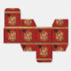 In a square are 2 roosters, one staying on a golden shape inside of which is the second rooster. Behind the scene there is a red background on which decorative and ornate letters form the words: "roos ter year". Favor box for Fire Rooster Year 2017 or birthday (Chinese zodiac).------------------ Don't forget the "Paper Cutting Collection".