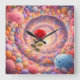 A vibrant red rose floats at the heart of a colorful dream world, surrounded by fluffy pastel creatures and a magical spiral of soft textures. This enchanting wall clock design instantly brightens a child’s room with warmth, imagination, and playful charm.