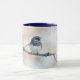 This nature mug features my original photograph of a Dark-eyed Junco bird sitting on a tree branch. I processed my photograph with a dreamy watercolor painterly style for an artsy flair. The handle and inside of the cup are ark blue to complement the artwork.