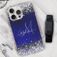 Cute royal blue and silver faux glitter monogram girly case cover. This iPhone case features a sleek, modern gradient of faux glitter that transitions from deep royal blue to sparkling silver. The bold colors and shimmering faux glitter effect create a trendy, girly aesthetic that’s both sophisticated and eye-catching.
