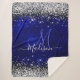Cute royal blue silver faux glitter monogram sherpa blanket