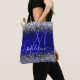 Cute royal blue silver faux glitter monogram tote bag