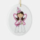 Lightweight, smooth, pure white ornament with nice sheen. Perfect size to be seen from across the room ... and to attract closer inspection! Price was great for ordering enough for the whole family! Clear, bold black design just as requested. Matches the order exactly. Just so nice!