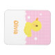 A design with a cute yellow rubber ducky in shower and soap. Lots of shower bubbles and a sweet pink bathroom tiles wall background. Sweet and adorable for little girls! Personalise easily with child's name.