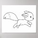 Cute little fox with big ears and bushy tail is running full tilt. Made for easy coloring.