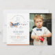Cute Rust Navy Plane Cloud Photo Birthday Invite