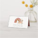 Cute Rust Orange Boho Floral Rainbow Cross Baptism Place Card