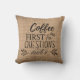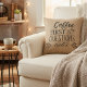 Cute Rustic Burlap Coffee Lovers Throw Pillow