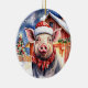 Cute Rustic Christmas Pig and Barn Personalized Ceramic Ornament