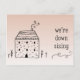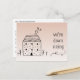 A cute rustic cottage with smoke curling from the chimney is set on a rose gold and white gradient background beside the words "we're downsizing." Easily customize the back of the new address postcard with your personal information. Coordinating change of address label is also available.