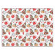 Cute rustic farmhouse Christmas tablecloth includes watercolor illustrations of favorite holiday treats like hot cocoa and gnomes, Christmas trees, and vintage trucks. Deck your halls with xmas cheer! Traditional red, white, and green color palette.