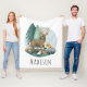 This cute and rustic kids fleece blanket features an adorable woodland animal illustration, with a deer, hedgehog, badger, mushroom, and flowers, and space to add your boy or girl's name in simple typography. The perfect minimalist gender-neutral design for any animal lover!