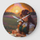 Cute Sad Anime Style Woman in Meadow at Sunset Large Clock