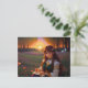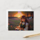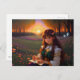 Cute Sad Anime Style Woman in Meadow at Sunset Postcard
