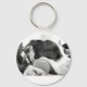 cute sad looking pitbull dog black white with ball keychain