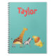 Perfect for school, this notebook features an aqua blue background with cute safari animals at the bottom. Featuring a watercolor giraffe, zebra, and lion, personalize at the top using fun red font. Customize your notebook today!