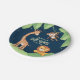 These adorable safari themed baby shower plates can be personalized with the honoree's own name and baby shower date! Cute baby jungle animals decorate the plate, with a swinging monkey, smiling giraffe and jumping lion. Leafs and stars dot the edge for a cute, sweet night time theme. Original artwork by Colleen Michele.