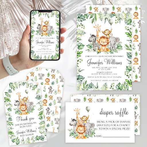 Having your Cute Safari Animals Wild One Baby Shower Invitation match the theme of your party is a great detail that your guests will appreciate. The thoughtfulness of a consistent party theme is often appreciated and can show your guests that you can host a cohesive event.