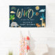A little Wild One is on the Way! Modern baby shower banner. Design features cute safari jungle animal illustrations on a trendy navy blue background, just customize name and date to make this unique to your event.
