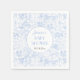 Elegant Blue Toile de Jouy Floral Baby Shower Paper Napkins, featuring a charming safari animal theme. This beautifully designed Paper Napkins showcases a hot air balloon along with adorable safari animals like a giraffe, elephant, zebra, and lion, all set against a blue floral chinoiserie background. With its vintage aesthetic and graceful typography, this Paper Napkins sets the tone for a timeless celebration. Fully customizable to match your event details, it's the perfect choice for a boy's safari-themed baby shower, blending charm and sophistication.