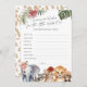 The Wild One Safari Animals Baby Girl Wishes Cards are the perfect addition to any baby shower, inviting guests to share their dreams and hopes for the new arrival. Each card showcases a charming watercolor design featuring beloved safari baby animals, including an elephant, lion, tiger, raccoon, and chimpanzee, all nestled among tropical leaves for a touch of wilderness. Designed specifically for a boy's baby shower, these cards capture the spirit of adventure and the joy of welcoming a new life. As part of the Wild One Safari Animals collection, these wishes cards seamlessly blend with your themed celebration, making for a memorable and heartwarming experience for all.