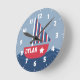 Decorate a kid's room with this colorful clock which has a cute sailboat with stripes sail. The colorful palette of red, white and blue makes this perfect for a nautical theme room. Great for little sailor boys who love maritime and nautical themes. Personalise the boat with child's name.