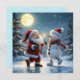 Cute Santa and snowman dancing on ice in winter Holiday Card