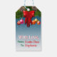 This festive gift tag features a cute Santa Claus under a Christmas tree in a snowy winter night. Customize it on both sides with any text you like for someone special.