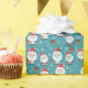 Cute Santa Christmas Gift wrapping paper. Cute little Santas on a light blue background.