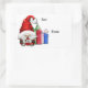 This "To" and "From" gift tag sticker has a cute image of a little white bearded gnome dressed in a red Santa Claus suit. Beside him are several brightly wrapped gift packages. The gray text at the right side says "To" and "From", but you may easily change that and even personalize the sticker, if you'd like.