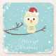 Cute Santa Owl Merry Christmas Light Blue Square Paper Coaster