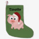Customize this Christmas stocking featuring a cute pig wearing a Santa hat with a name or the text of your choice.