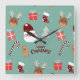 Cute Santa Reindeer Candy Cane Gingerbread Pattern Square Wall Clock