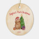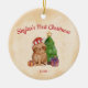 An adorable ornament features a hand-drawn Christmas sloth wearing a Santa hat, sitting next to a festive Christmas tree waiting to open presents. Perfect for personalized ornaments! The back also has a way to put who the ornament is from. Illustration by Lavender Mint Graphics — entirely hand-drawn, with no AI-generated content.