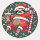 Cute Santa Sloth on Candy Cane with Hot Cocoa Classic Round Sticker