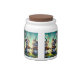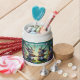 Wish someone special (or even yourself) a magical day with this candy jar, which depicts an AI-generated fantasy-inspired woodland scene of saolas playing violas by candlelight in a magical forest sprinkled with trees, colorful butterflies, and colorful flowers.