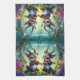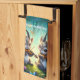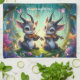 Wish someone special (or even yourself) a magical day with this kitchen towel, which depicts an AI-generated fantasy-inspired woodland scene of a pair of saolas playing violas by candlelight in a magical forest sprinkled with trees, colorful butterflies, and colorful flowers.