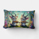 Wish someone special (or even yourself) a magical day with this lumbar throw pillow, which depicts an AI-generated fantasy-inspired woodland scene of a pair of saolas playing violas by candlelight in a magical forest sprinkled with trees, colorful butterflies, and colorful flowers. Reverse shows identical design.