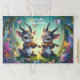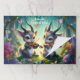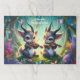 Wish someone special a magical birthday with these paper placemats, which depict an AI-generated fantasy-inspired woodland scene of a pair of saolas playing violas by candlelight in a magical forest sprinkled with trees, colorful butterflies, and colorful flowers.