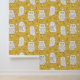 Introducing the **Cute Scandinavian Owls Flowers Bees Saffron Yellow Wallpaper**—a delightful blend of elegance and whimsy for your child's nursery. This elegant minimalist and trendy modern wallpaper features a charming Scandinavian design, perfect for kids. The girly, colorful, and stylish chic pattern showcases adorable owls, hearts, bees, and flowers set against a backdrop of saffron yellow, butterscotch, white, and black.