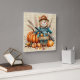 cute scarecrow with pumpkins wall clock
