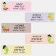 Cute kid's name labels in 5 designs - each color has a different bookworm character. Persoanlize with up to 5 different names along with your custom text such as class name or phone number. Perfect for back to school supplies and easy to color code for each child - feel free to click into the design tool if you want to change the background colors.