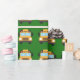 A cool yellow school bus pattern on green wrapping paper for a driver.