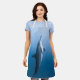 Great color and even though I ordered the kid size, it covers well enough to use during the holidays. I am not a big woman and prefer a shorter apron. I stand 5"6" and the length of the garment goes to mid-thigh. The tie straps fit well at my waist and even though there is no neck strap adjustment, the opening is plenty big enough. I am happy with the size and fit. I am sharing my apron with my 10 year old grandson, too! The color is vibrant and looks good, as shown on the website. The stitching looks strong and reinforced. Photographed is front side and back side of the apron, reinforced straps and coloring. My phone camera may not be the best at showing the details.