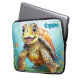 An adorable chibi sea turtle personalized tablet case featuring a cartoon sea turtle swimming under the ocean.