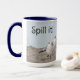 This pretty mug features my original photograph of cute sea gull birds on the beach, one of them has its beak open as if talking to another. Processed in an animated technique for a comic style. The left side of the mug has the words "Spill it!" for the slang of spill the tea or give me the scoop and the right side of the mug has the bird with its beak open, and the words "So I said..." for a cute beach style comic strip. You can click through the mug images to see the right side. The handle and inside of the cup are a blue tone to complement the artwork.