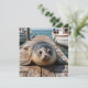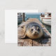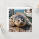 An adorable blank notecard featuring a cute seal sitting on a boat dock by the ocean just look sweet as can be.